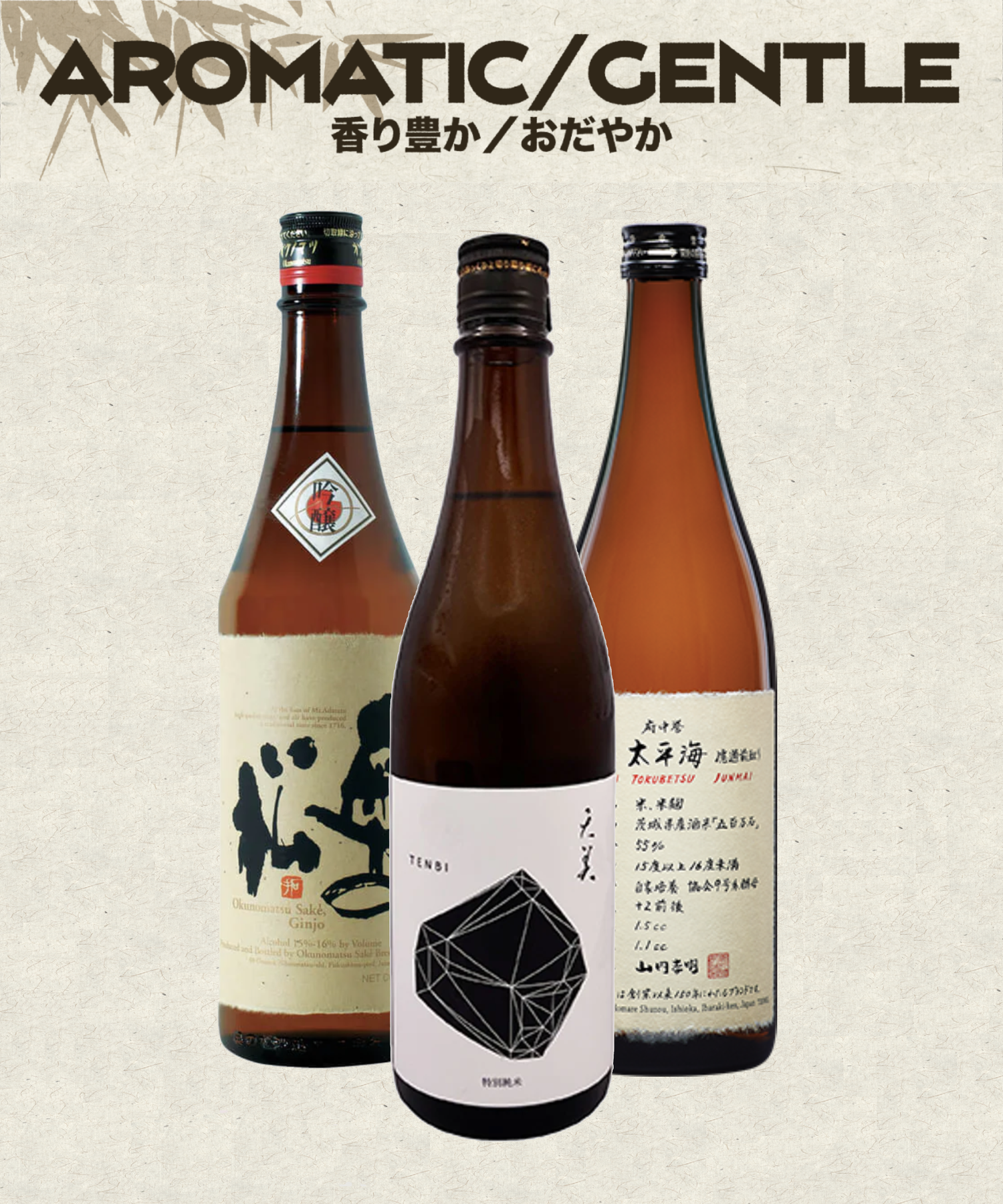 Our collection of Aromatic or otherwise Gentle sake. Everything here you can bet...
